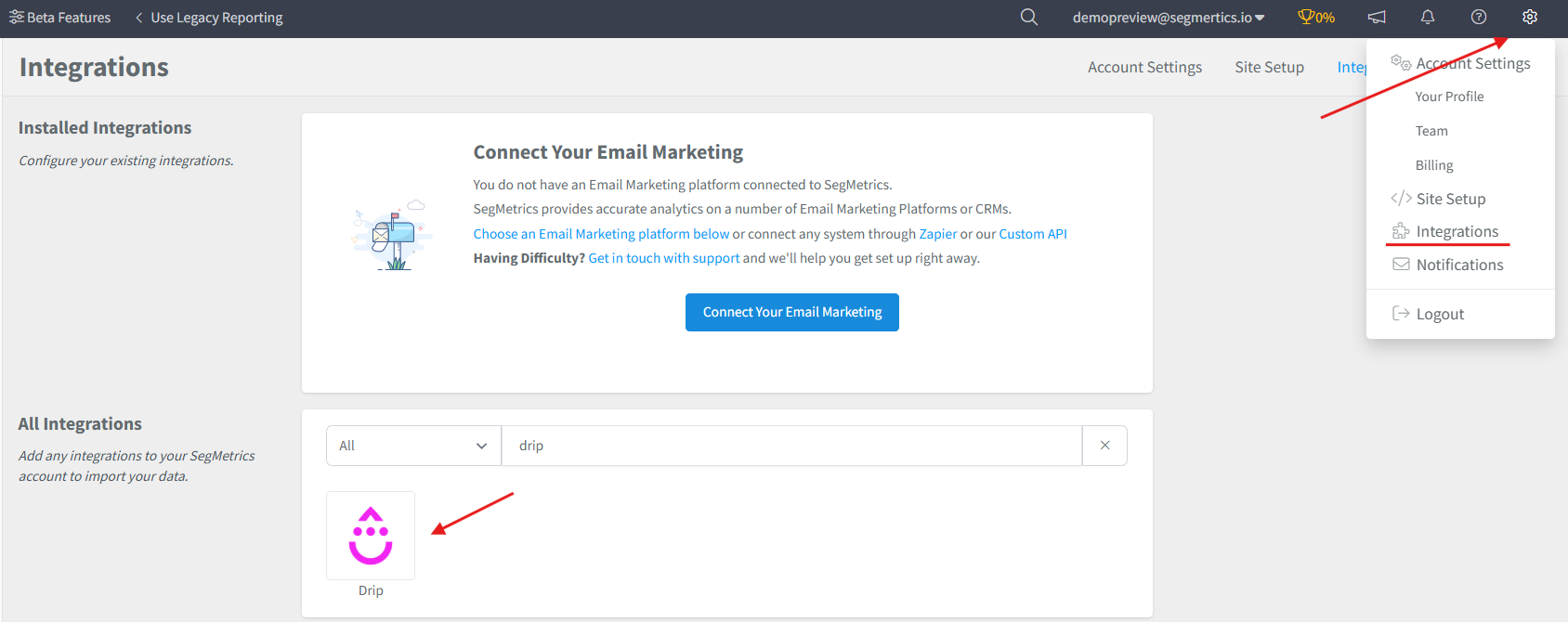 How to connect Drip to SegMetrics