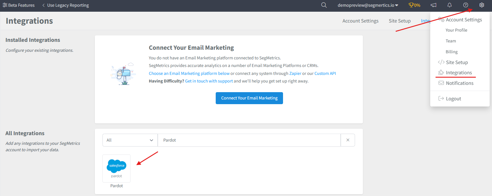 Payment Data: Since Pardot doesn't track payments natively, SegMetrics connects payment information from your payment processor to Pardot contacts using email addresses.