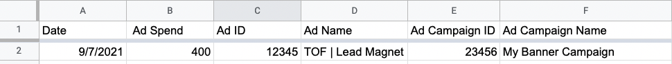 - Ad Spend: The total amount of ad spend for the coinciding date
