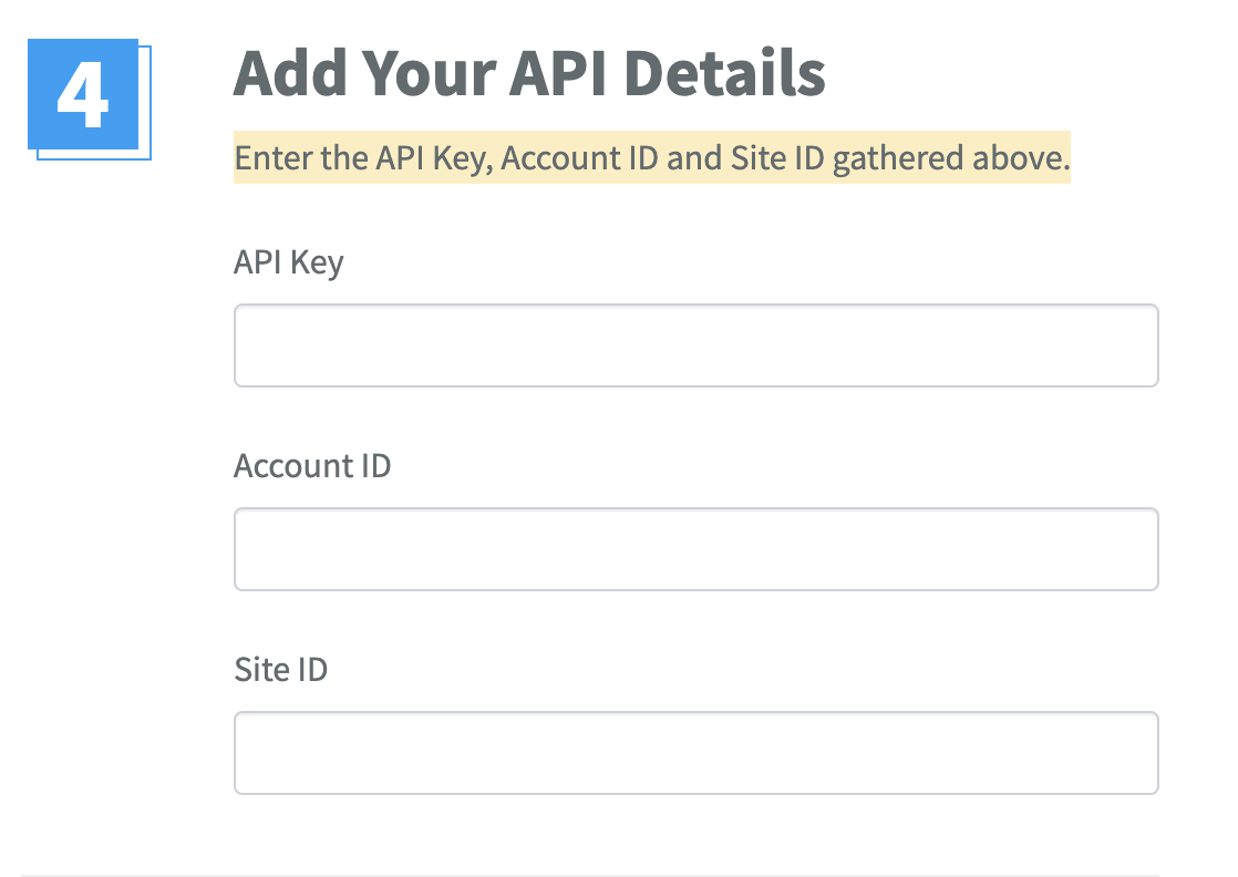 - Enter the API Key, Account ID and Site ID into the Wix integration page in SegMetrics