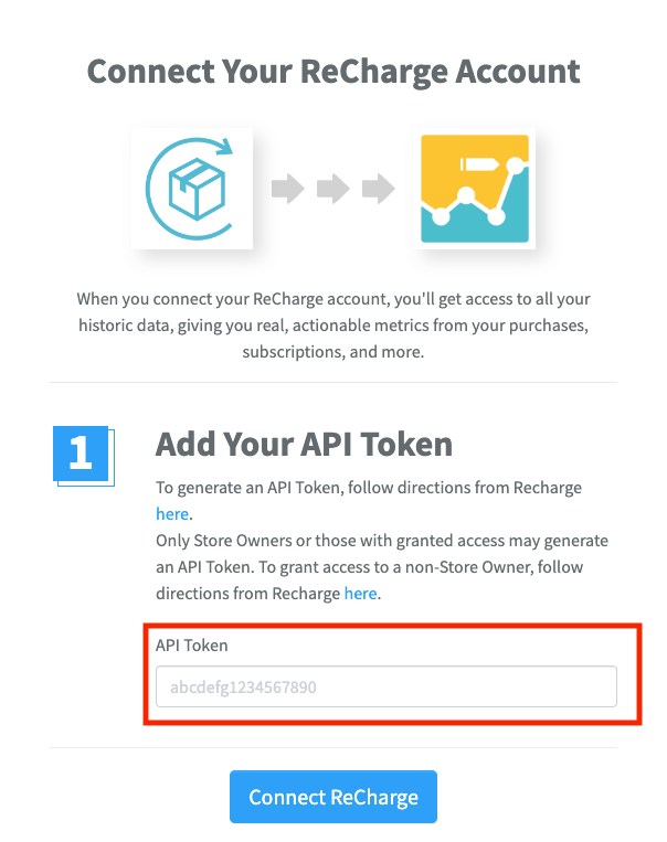 Once you have your ReCharge API token with proper permissions, you can connect it to SegMetrics.