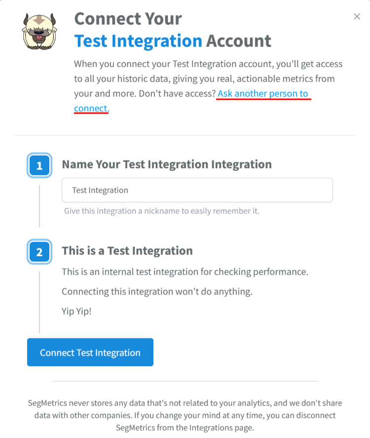 The third-party connection process is designed to be secure and limited in scope, ensuring the invited person can only connect the specific integration without accessing your SegMetrics account.