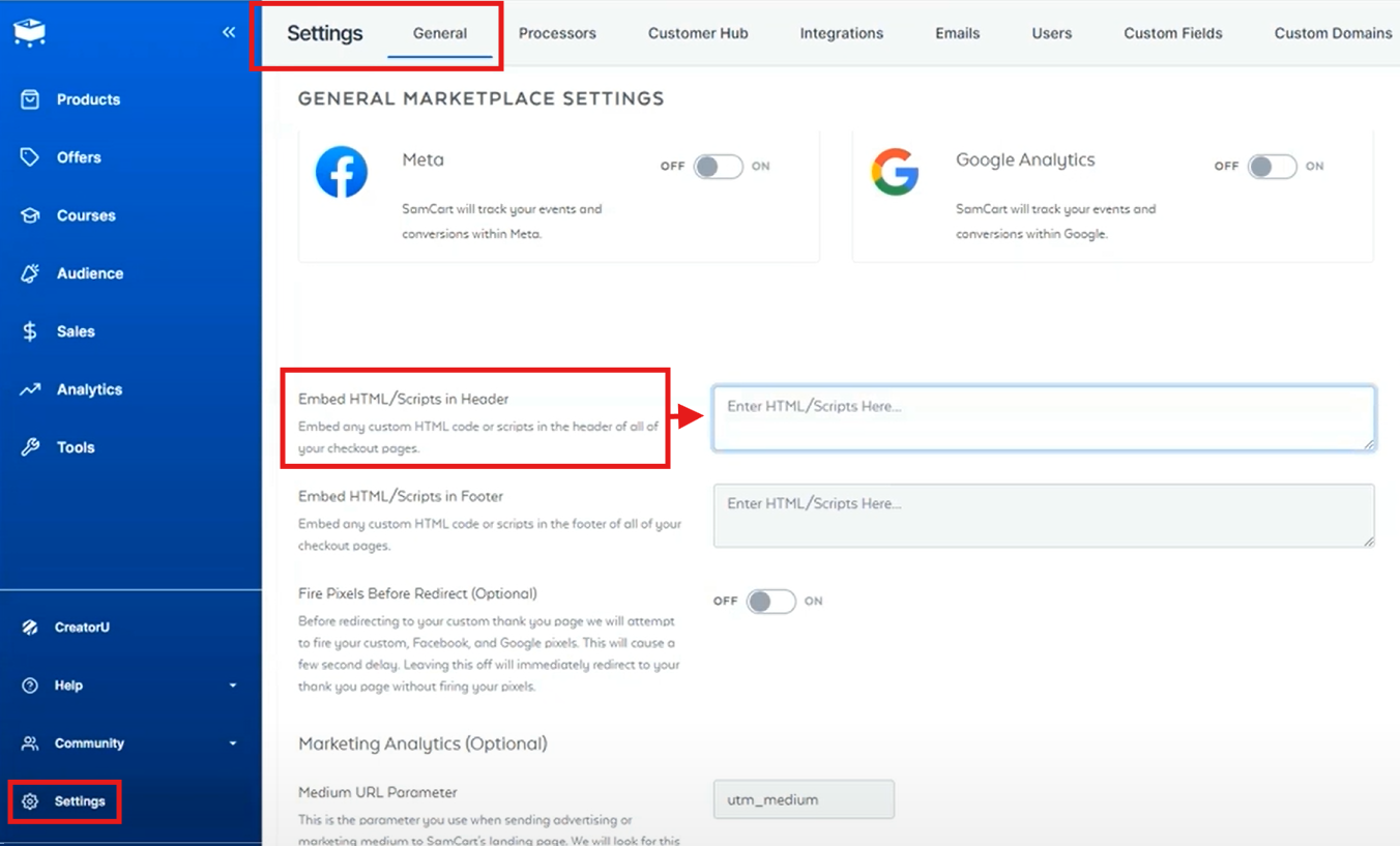 - Enter your SamCart Store Domain (e.g., yourstore.samcart.com)