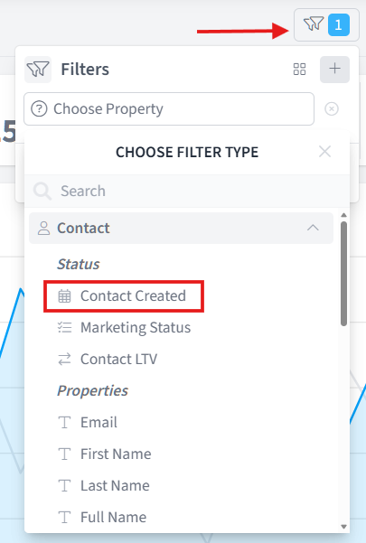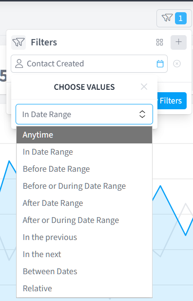 When you need to analyze a specific group of contacts based on when they joined your system, use the Contact Created filter with custom date ranges.