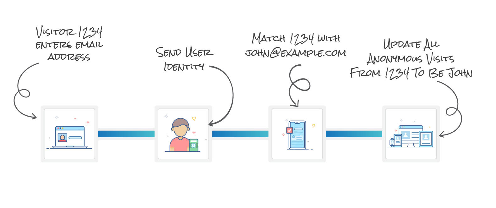 - Update all anonymous visits from the visitor and associate that activity with john@example.com