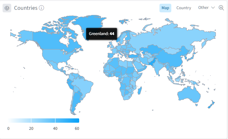 - Toggle between "Map", "Country", or "Other" views