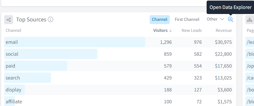 - Click the filter icon next to a channel to drill down into that specific source