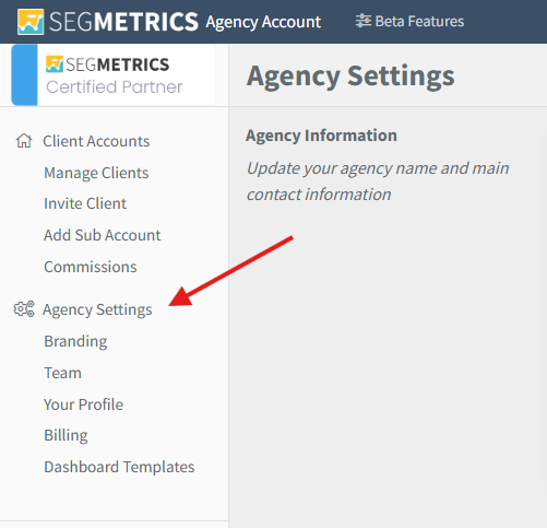 From your Agency dashboard, click on Agency Settings.