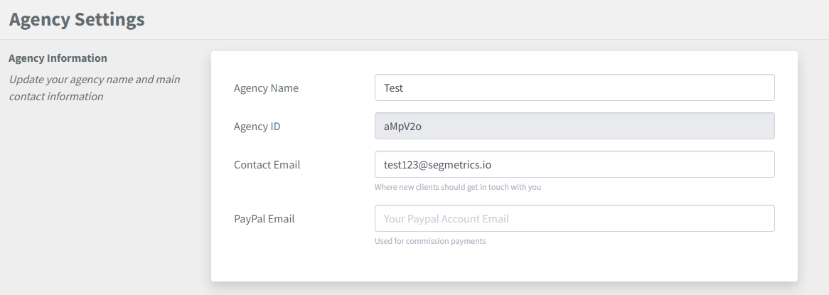 This will take you to the Agency Settings page where you can customize your agency information and branding.