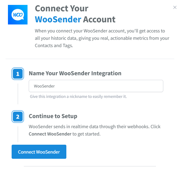 - On the WooSender integration setup page in SegMetrics, click the Connect WooSender button