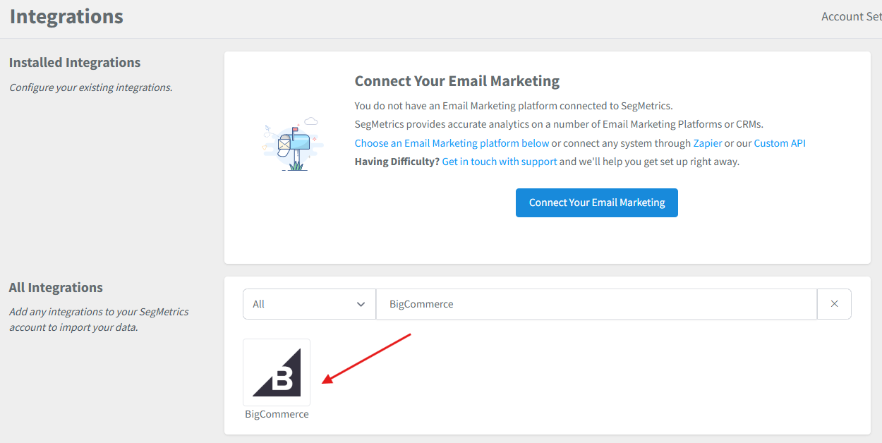 - Click on the BigCommerce Integration.