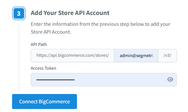 Q: What credentials do I need to connect BigCommerce to SegMetrics?