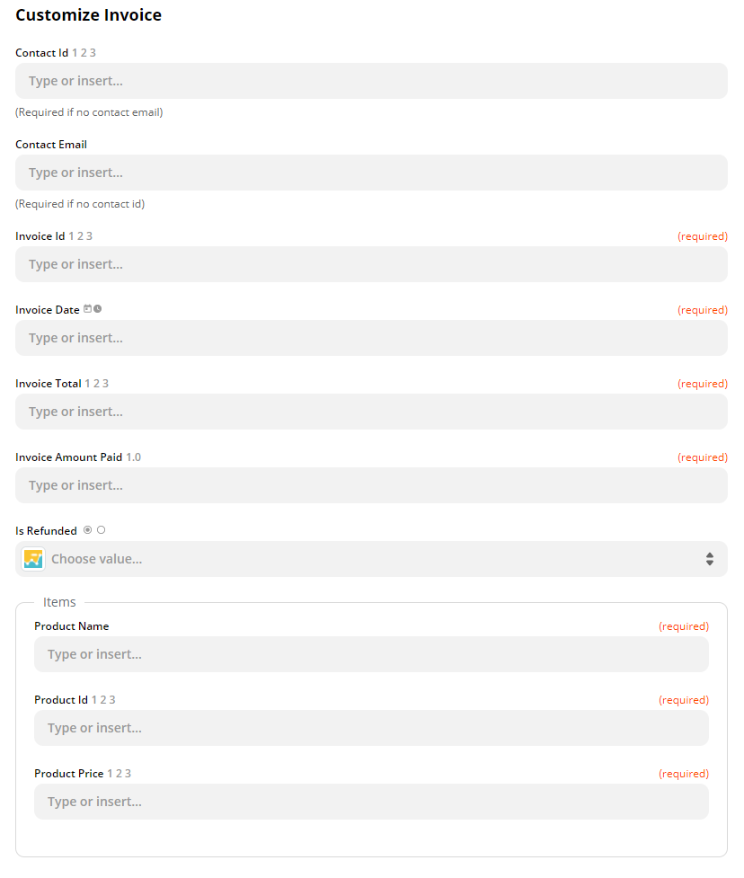 Adds an order or purchase into your SegMetrics account. If you pass a Contact ID, ensure it matches the Contact ID from your main CRM. If you use an email address, SegMetrics will match that contact with your CRM on the next import. If you pass an Invoice ID that already exists, that data will be updated.