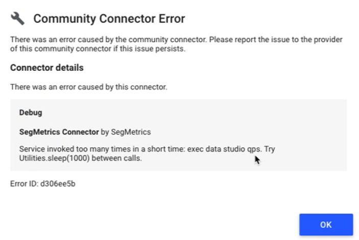 These occur when something happens internally to Looker Studio. The request doesn't reach SegMetrics, so additional details aren't available.